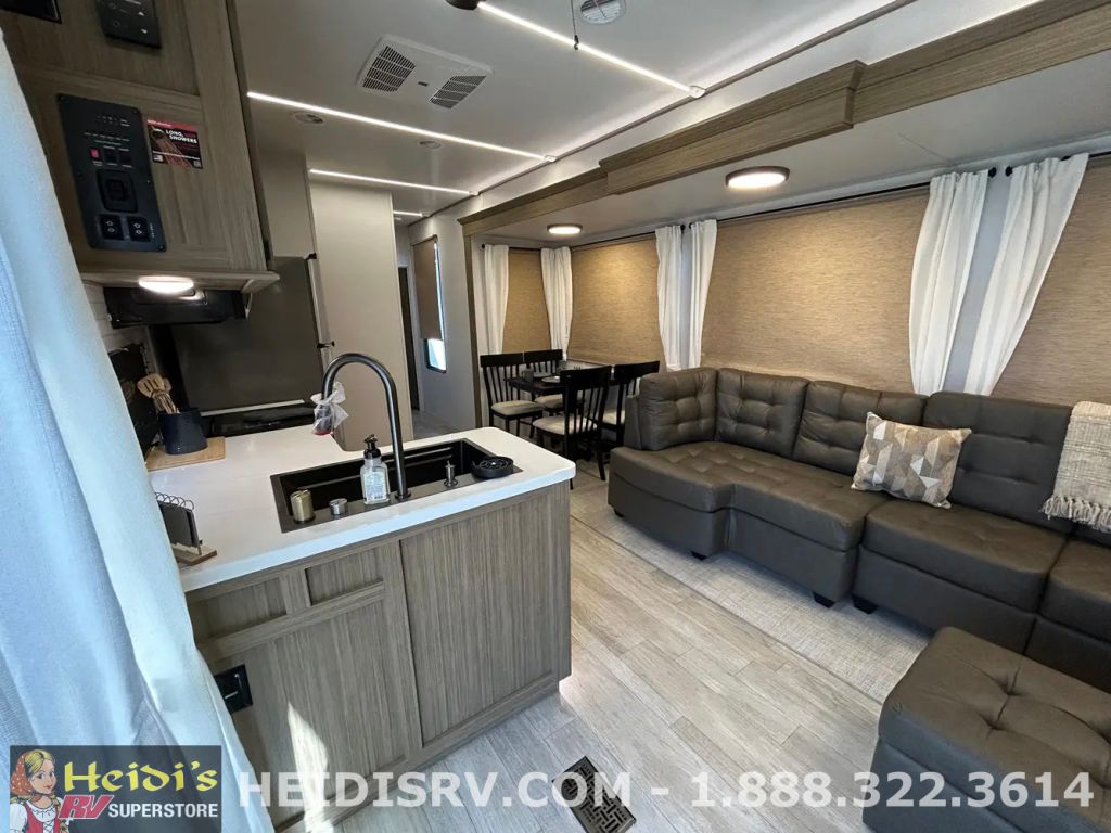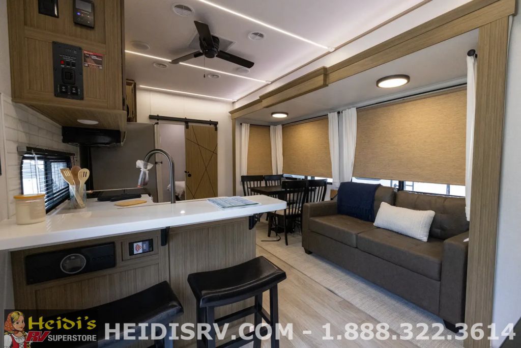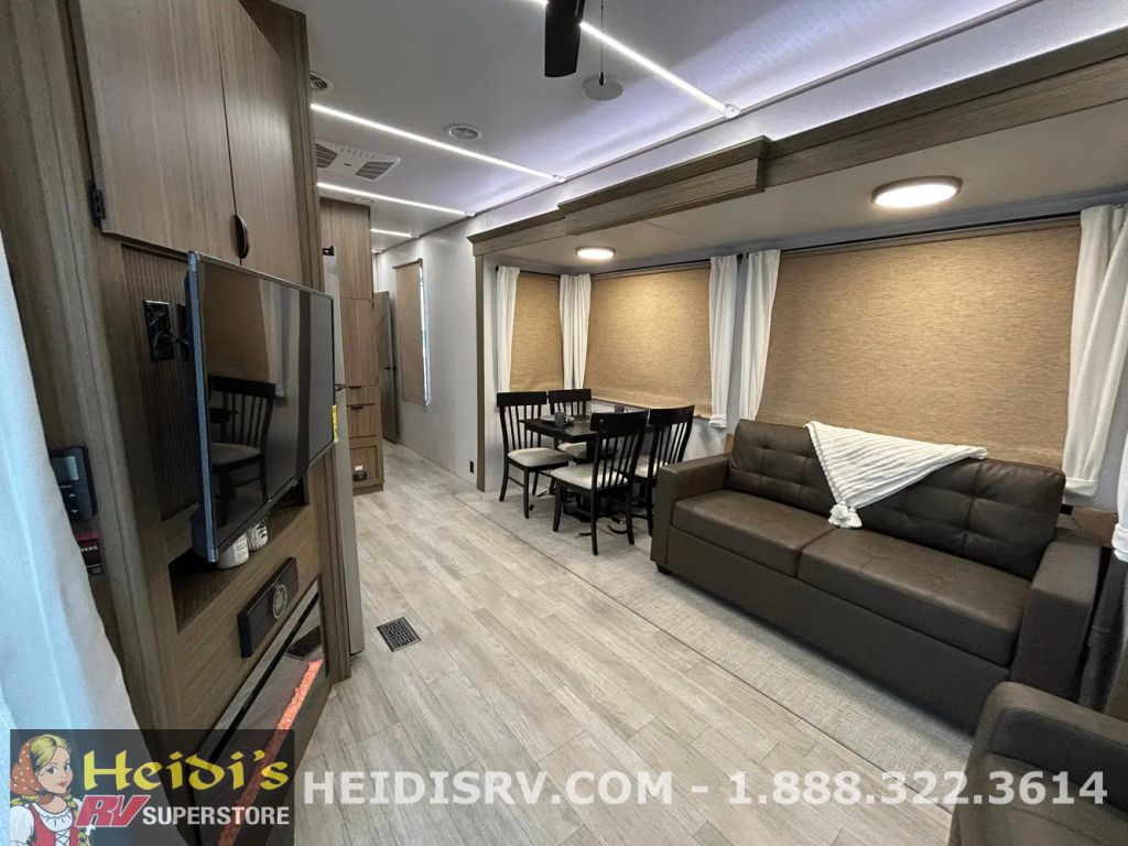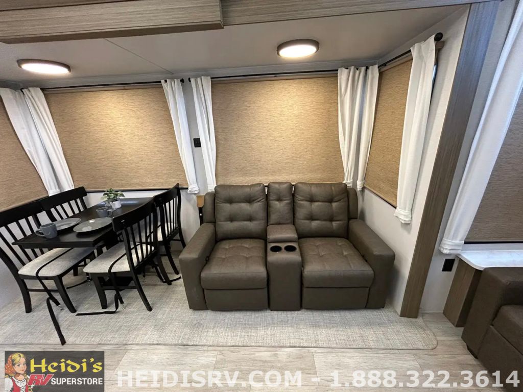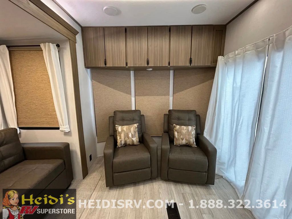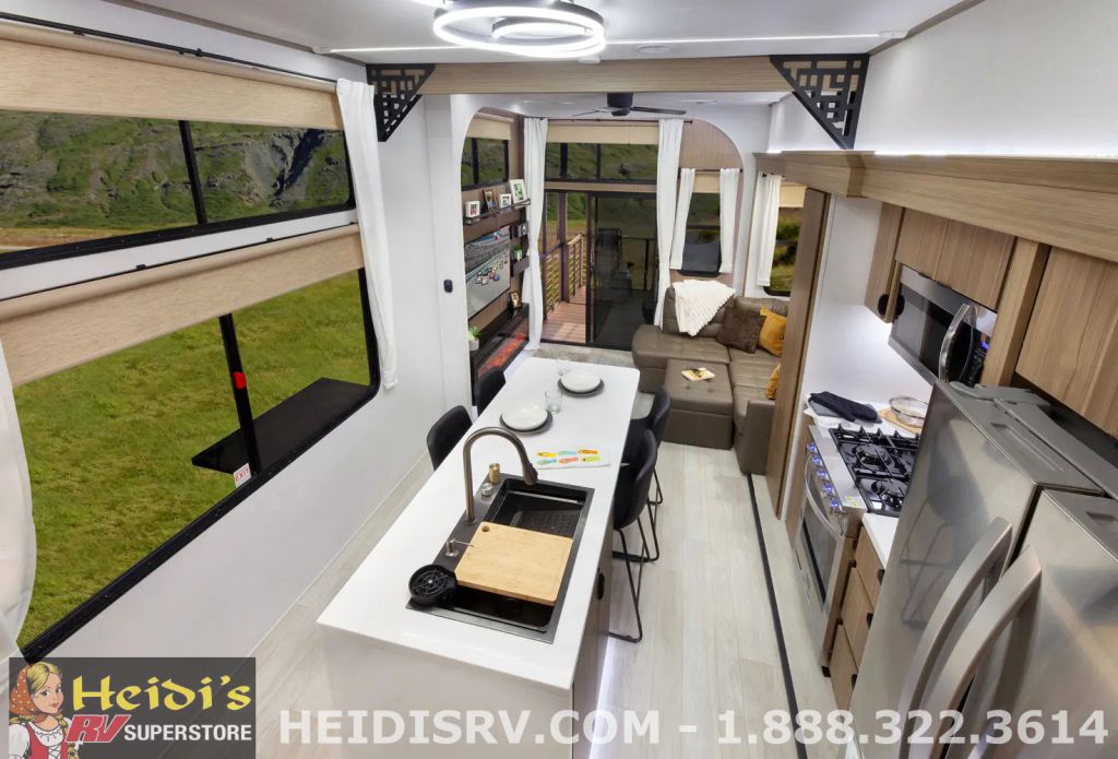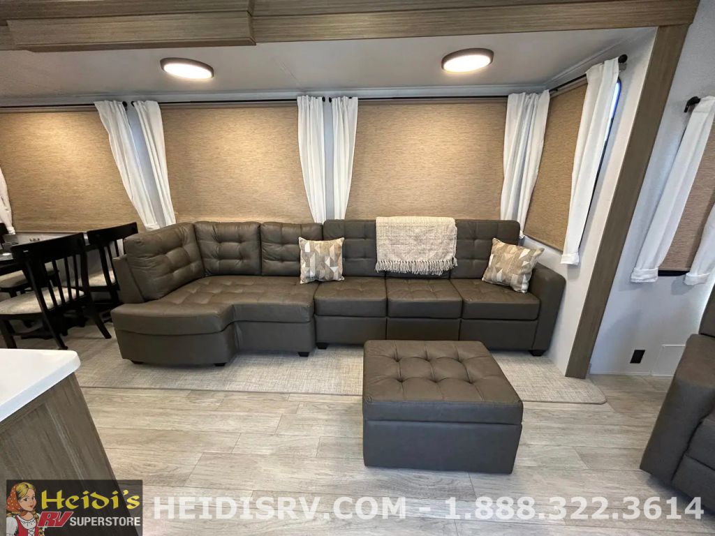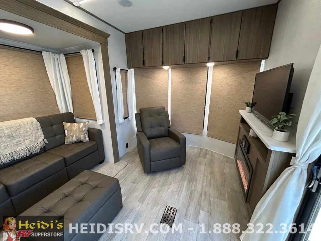 Salem Villa 40FDEN – Step inside the Salem Villa 40FDEN and discover a travel trailer designed to feel like a residential cottage. The open floorplan creates an airy, welcoming space, while panoramic windows and the front slide fill the interior with light and offer stunning views of your campsite. With generous room to move, this floorplan makes it easy to entertain, relax, and enjoy every moment on the road.