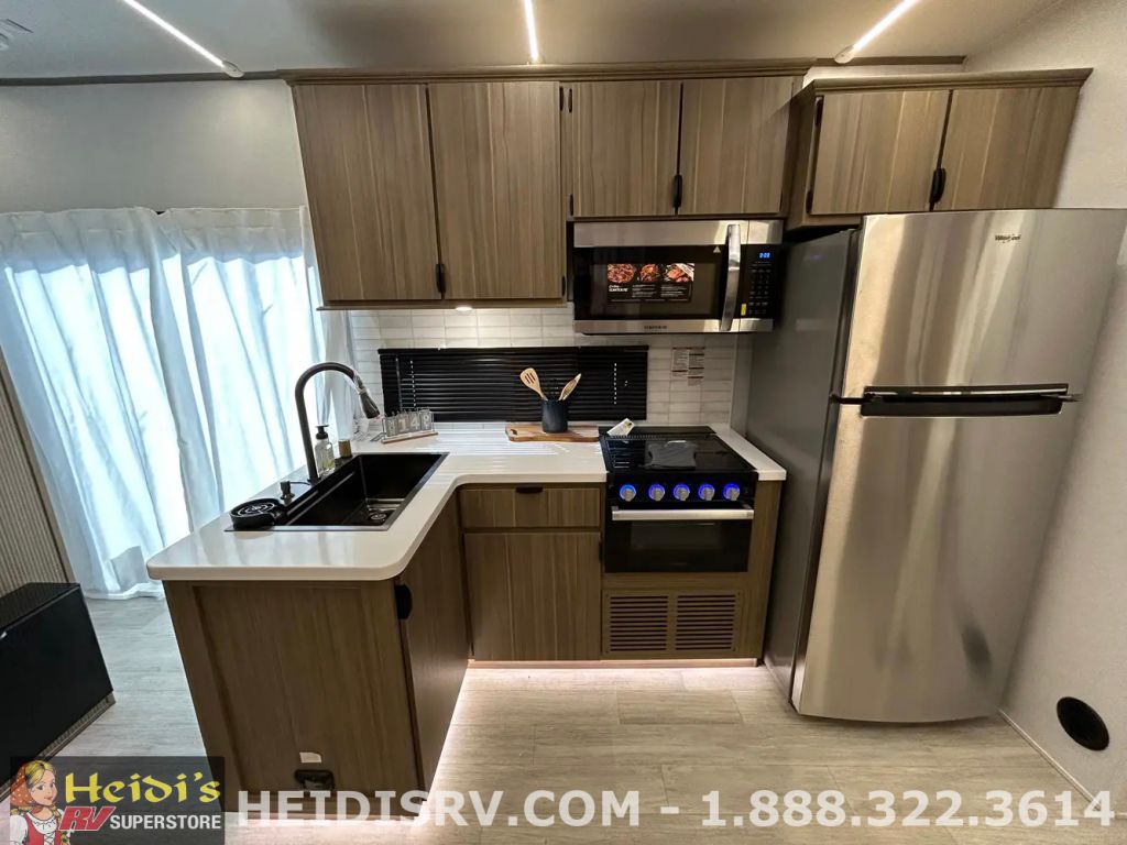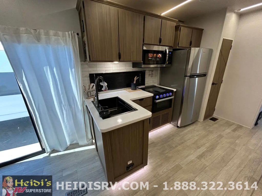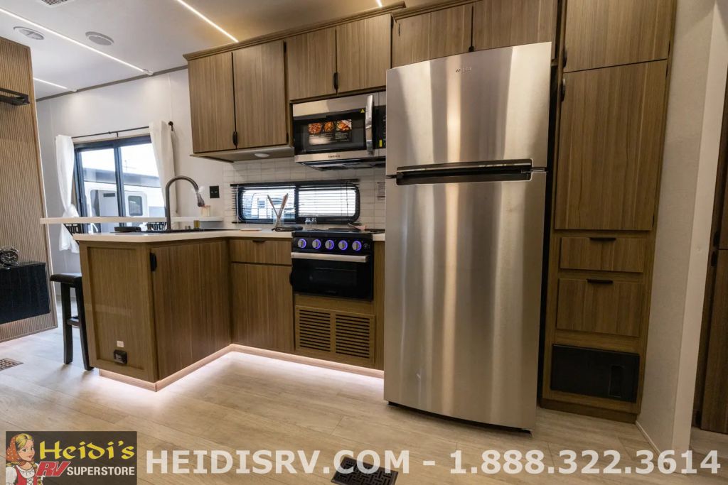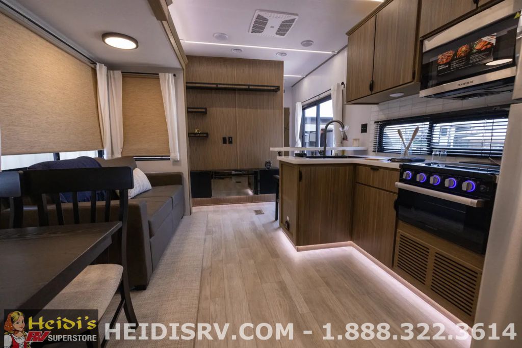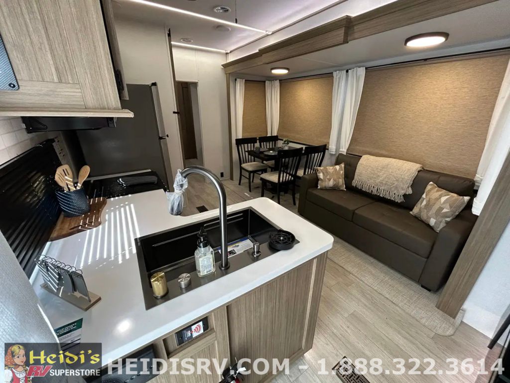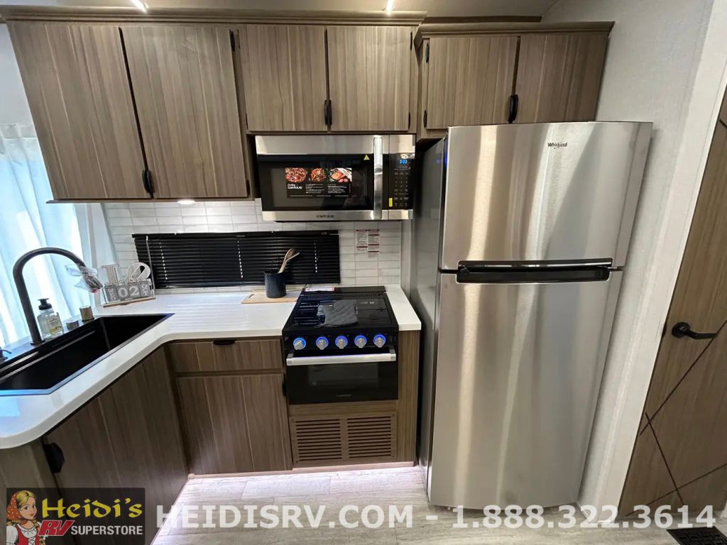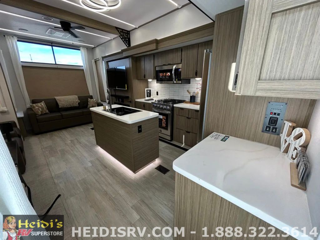 The fully equipped kitchen has everything you need to whip up your favorite dishes, and the entertainment center keeps the fun going after a day outdoors. Step outside under the 21’ awning and enjoy fresh air, shade, and plenty of space to unwind.