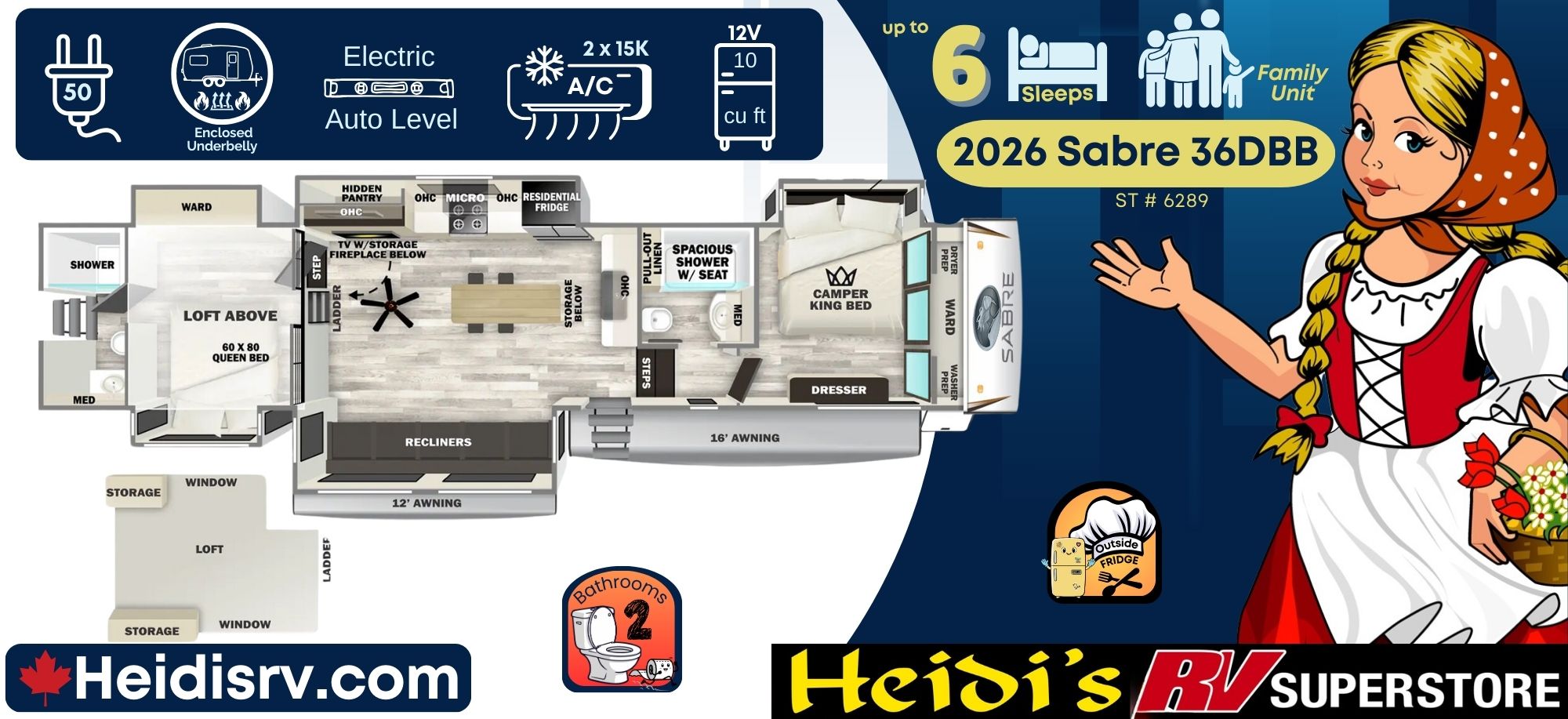 2026 FOREST RIVER SABRE 36DBB (LOFT, 2 QUEEN BED, 2 FULL BATH.)