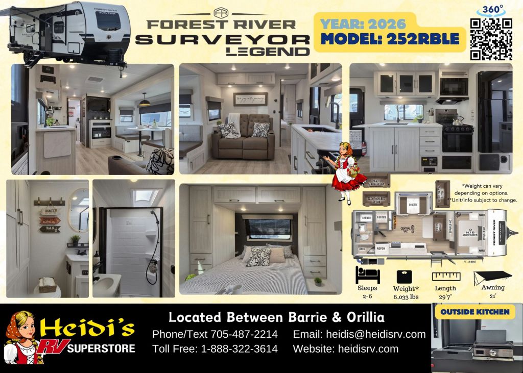 Discover Your Ideal RV at Heidi's RV Superstore, Proudly Serving Simcoe County ("Cottage Country"), including Barrie, Orillia, Innisfil, Collingwood, Wasaga Beach, and Beyond. Conveniently located ~1 hr North of Toronto on Hwy 11 in Oro-Medonte. Explore our extensive inventory online at www.heidisrv.com or Call Toll-Free 1-888-322-3614 for Expert Assistance