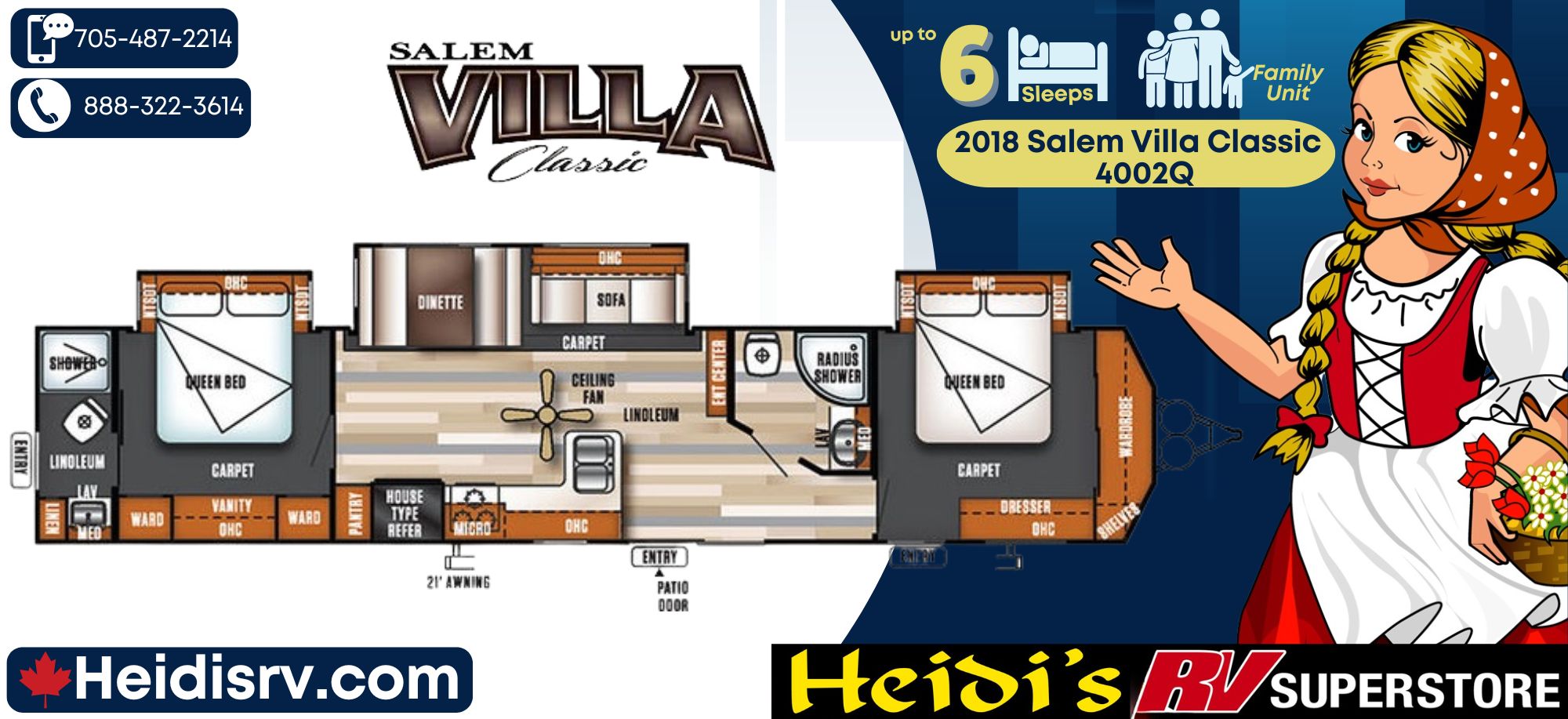 2018 FOREST RIVER SALEM VILLA CLASSIC 4002Q (2 QUEEN BEDS, 2 FULL BATH)