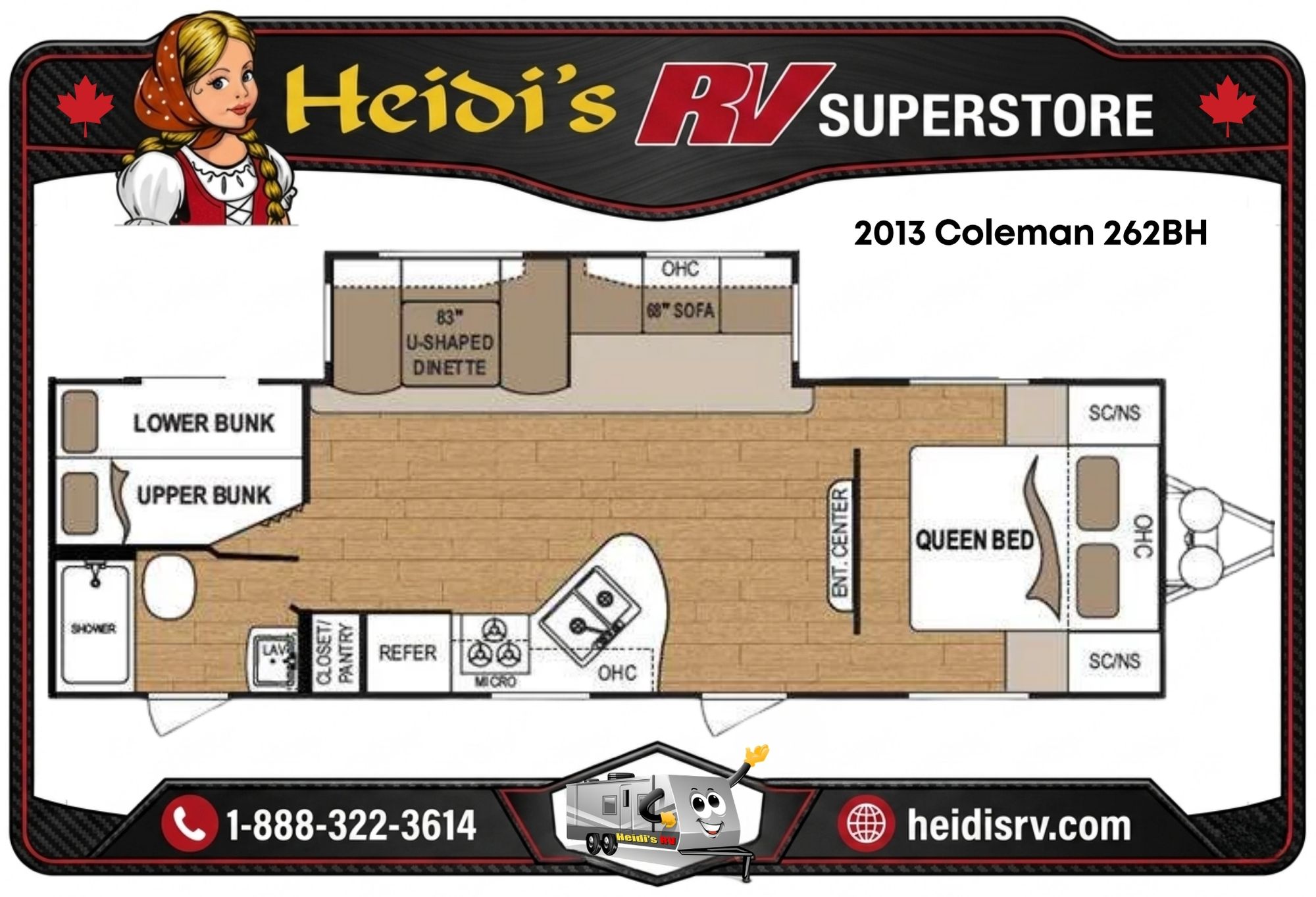 Disclaimer: Heidi's RV maintains this website as accurately as possible. All information, including but not limited to, pricing, product information, specifications, media and dealer promotions are subject to change without notice. Heidi's RV will not be held responsible for the accuracy of information contained in this or any other website.