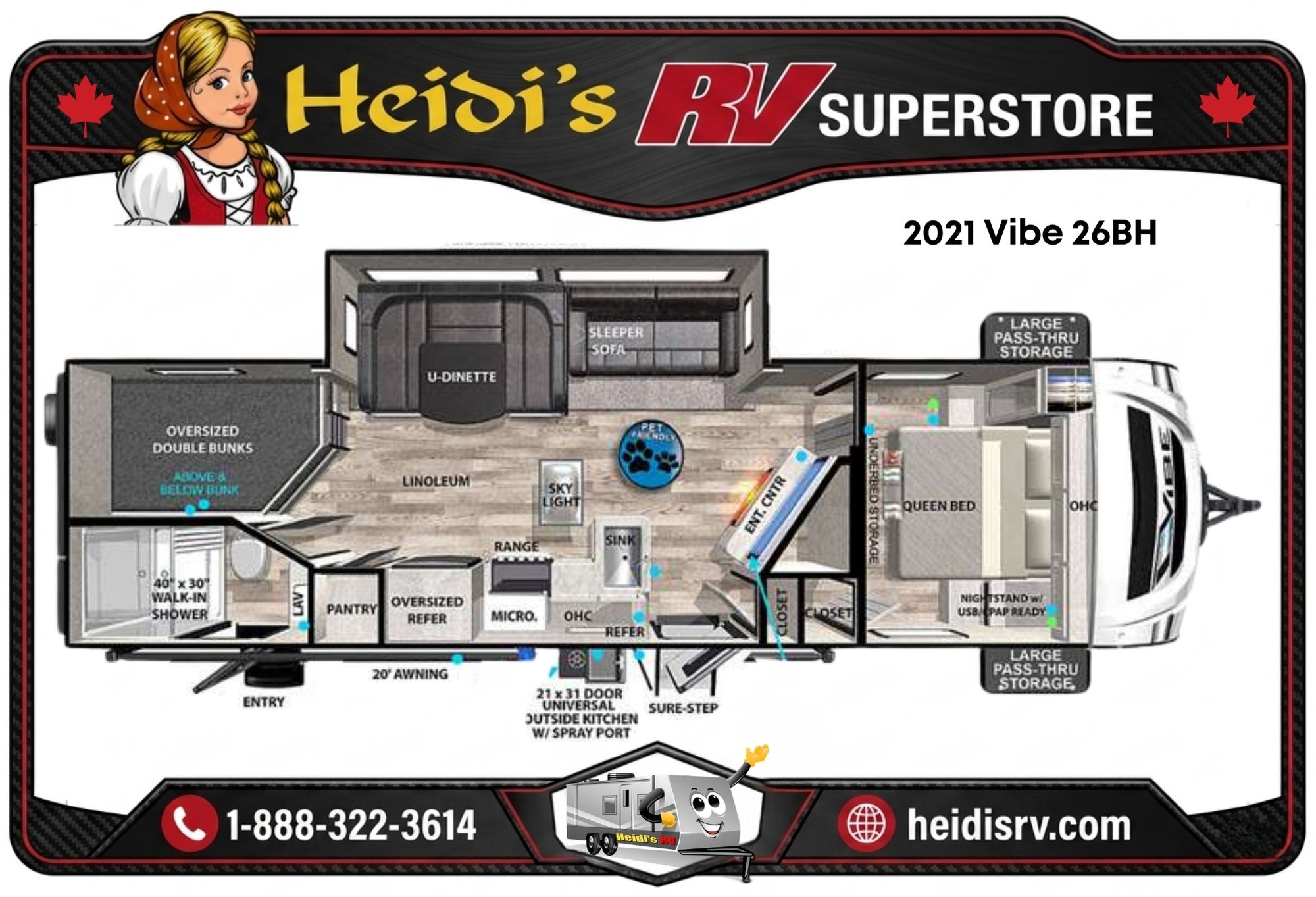 Disclaimer: Heidi's RV maintains this website as accurately as possible. All information, including but not limited to, pricing, product information, specifications, media and dealer promotions are subject to change without notice. Heidi's RV will not be held responsible for the accuracy of information contained in this or any other website.