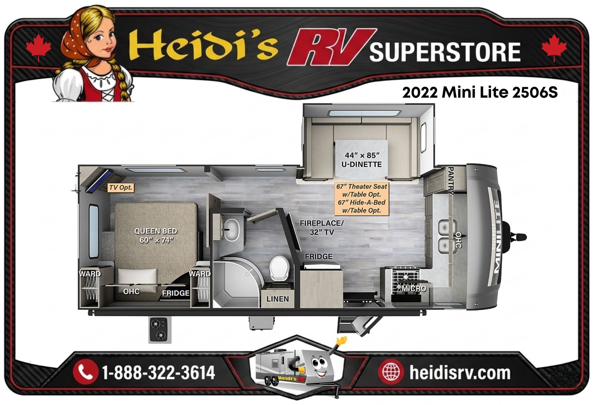 Disclaimer: Heidi's RV maintains this website as accurately as possible. All information, including but not limited to, pricing, product information, specifications, media and dealer promotions are subject to change without notice. Heidi's RV will not be held responsible for the accuracy of information contained in this or any other website.