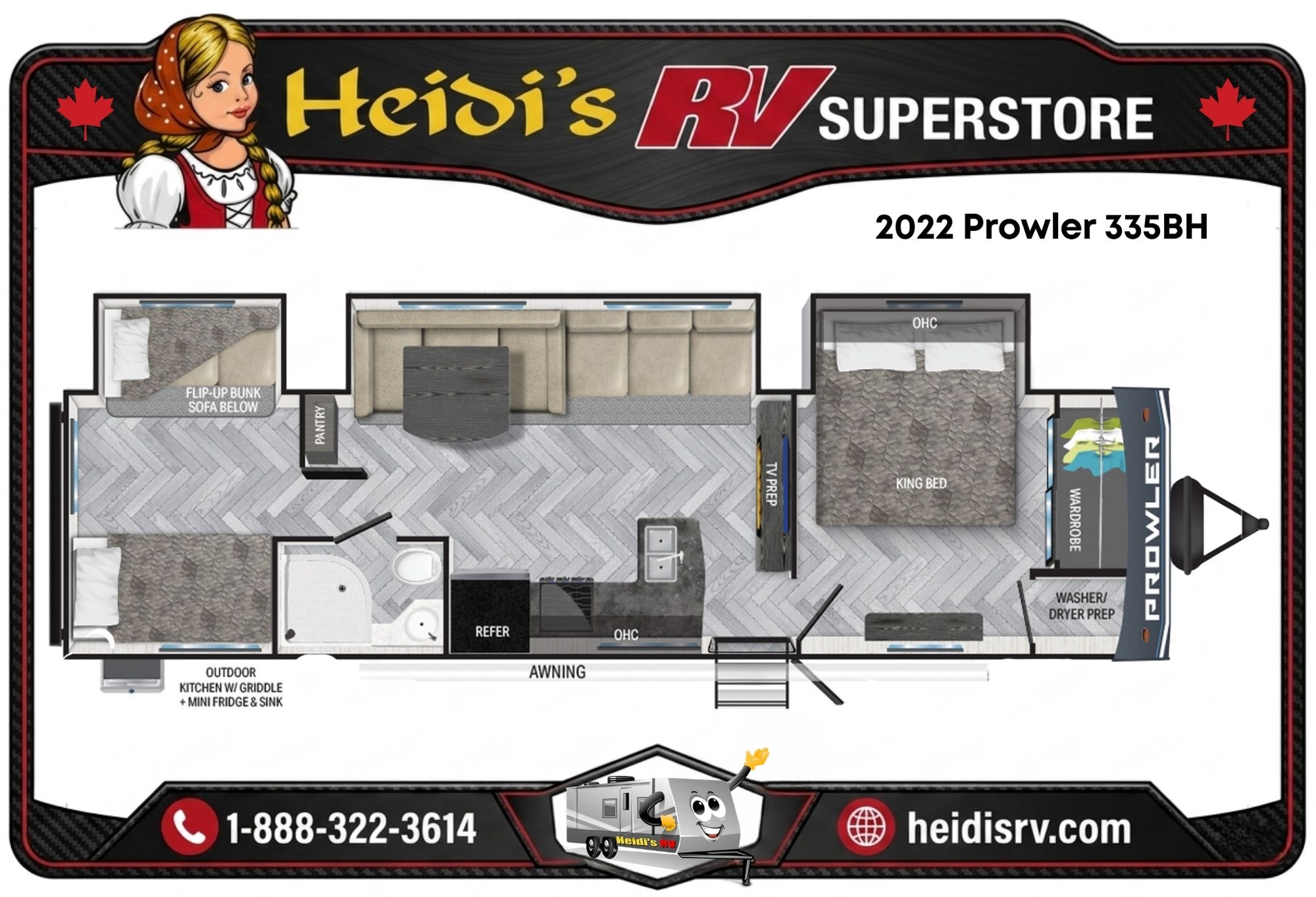 2022 HEARTLAND PROWLER 335BH (TRIPLE BUNKS, OUTSIDE KITCHEN)